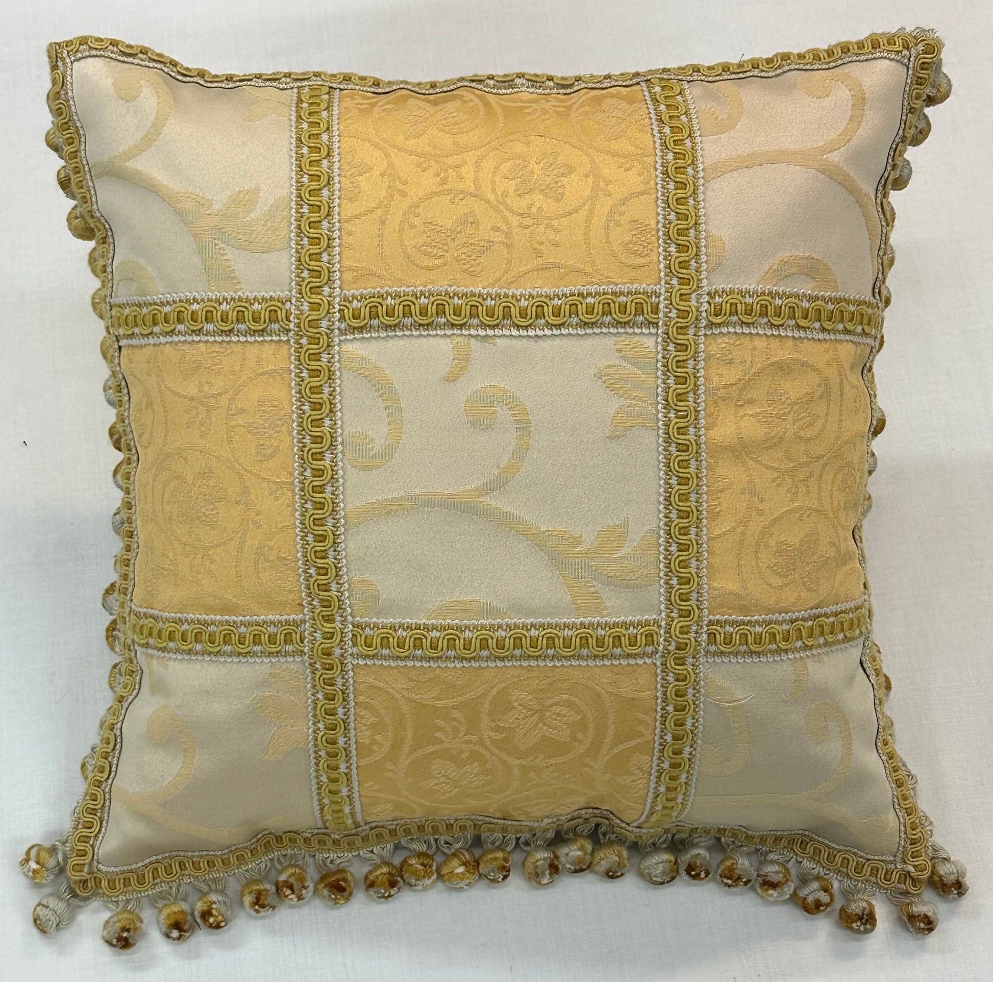 Cuscino Patchwork con bordo e frangia bombolino coordinati,misura cm 45 x 45